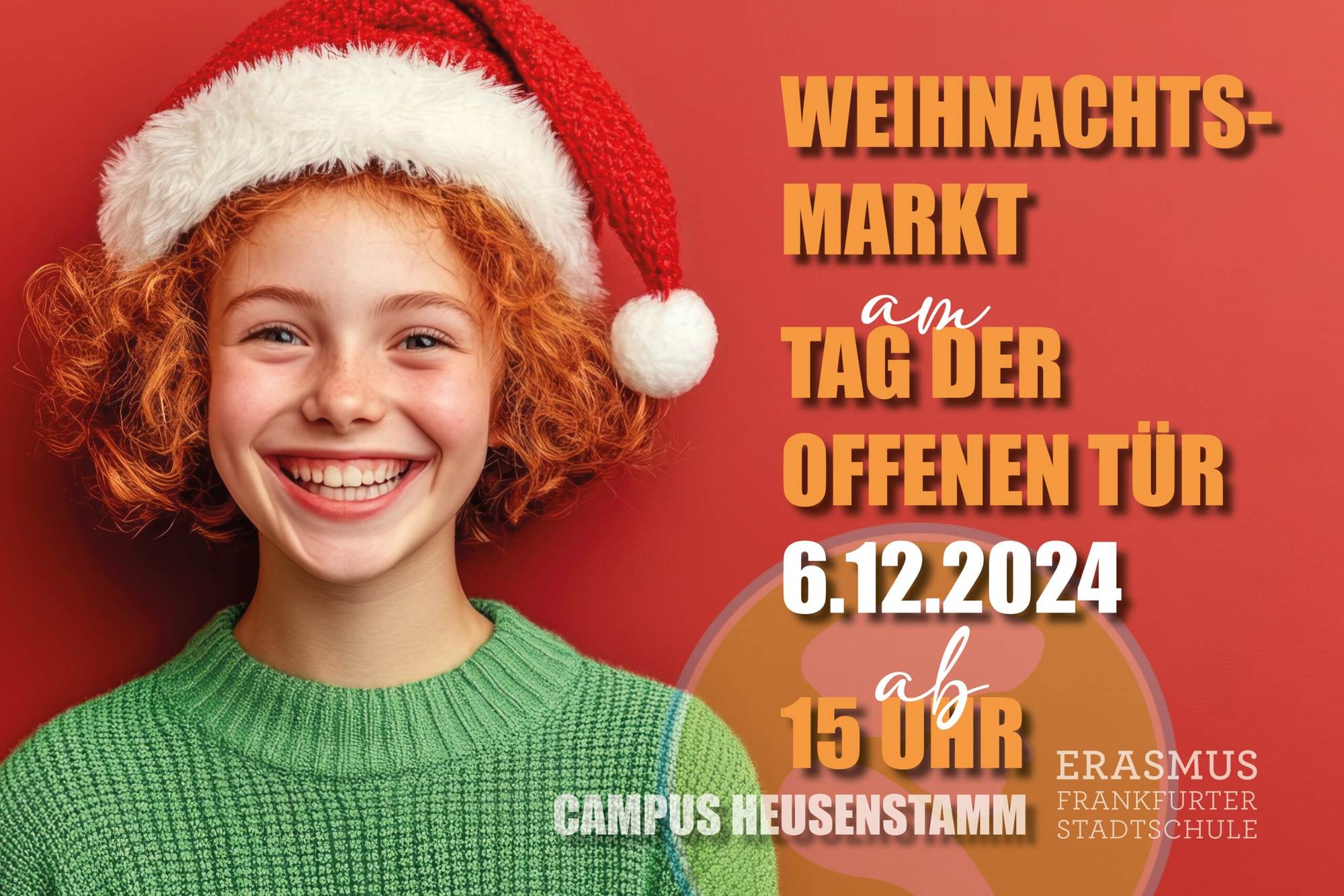 beim Erasmus Gymnasium weihnachtet es vorfreudig! Wir freuen uns, Ihnen mitteilen zu dürfen, dass wir uns gut auf dem Campus Heusenstamm eingelebt haben. Daher laden wir Sie und euch herzlich zu unserem Erasmus Weihnachtsmarkt am 6. Dezember 2024 ab 15:00 Uhr ein.